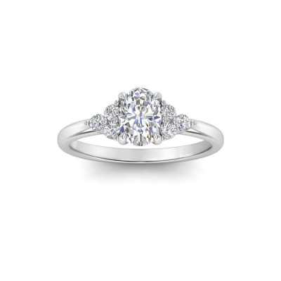 1 Ct Oval Moissanite & .18 Ctw Round Diamonds Trio Cluster Engagement Ring