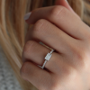 This stackable ring showcases a sleek east-west round-cut moissanite, weighing 0.50 Ctw, accented by pave-set side lab diamonds for added brilliance. A meaningful and timeless gift for Mother’s Day, birthdays, milestones, or as a promise ring, this piece is designed to be treasured for years to come. Available in 10K and 14K white, yellow, or rose gold.