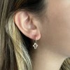 Gold Polished Cross Dangle Hoop - Complete the look by adding the perfect amount of gold to your ears. A polished gold cross dangles from a lightweight hoop designed for pierced ears. Wear this pair of religious earrings as a fashion statement or gift them to your mother, daughter, or sister. Secured with an endless hoop clasp and sold as a pair. Crafted in 14k Yellow gold.